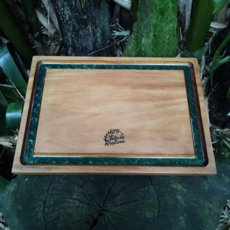 Cada tábua é cuidadosamente trabalhada, preservando os veios naturais da madeira e oferecendo um acabamento elegante com resina que destaca detalhes únicos, tornando cada peça exclusiva. Ideal tanto para o uso diário quanto para apresentação de alimentos em ocasiões especiais.